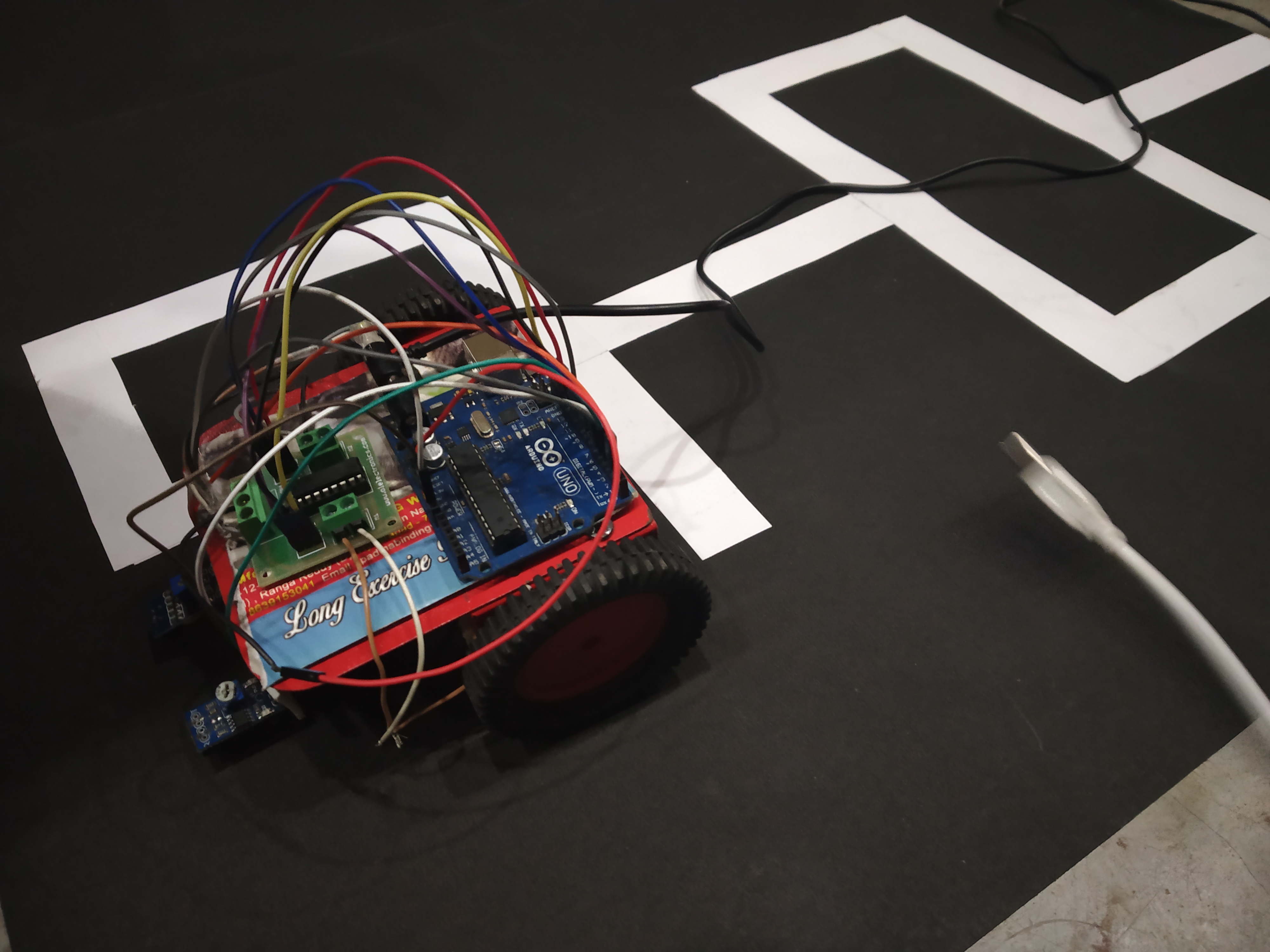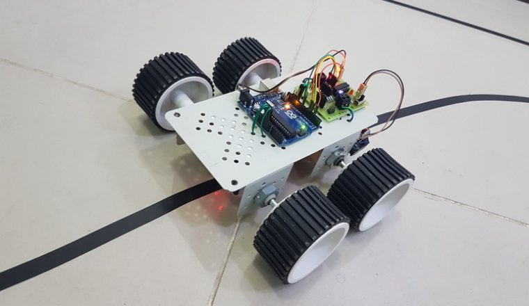 A robot that follows a line against a contrasting background by implementing Proportional Integral Derivative (PID) algorithm. It can traverse immensely complex networks that otherwise would be a nightmare if manually done.