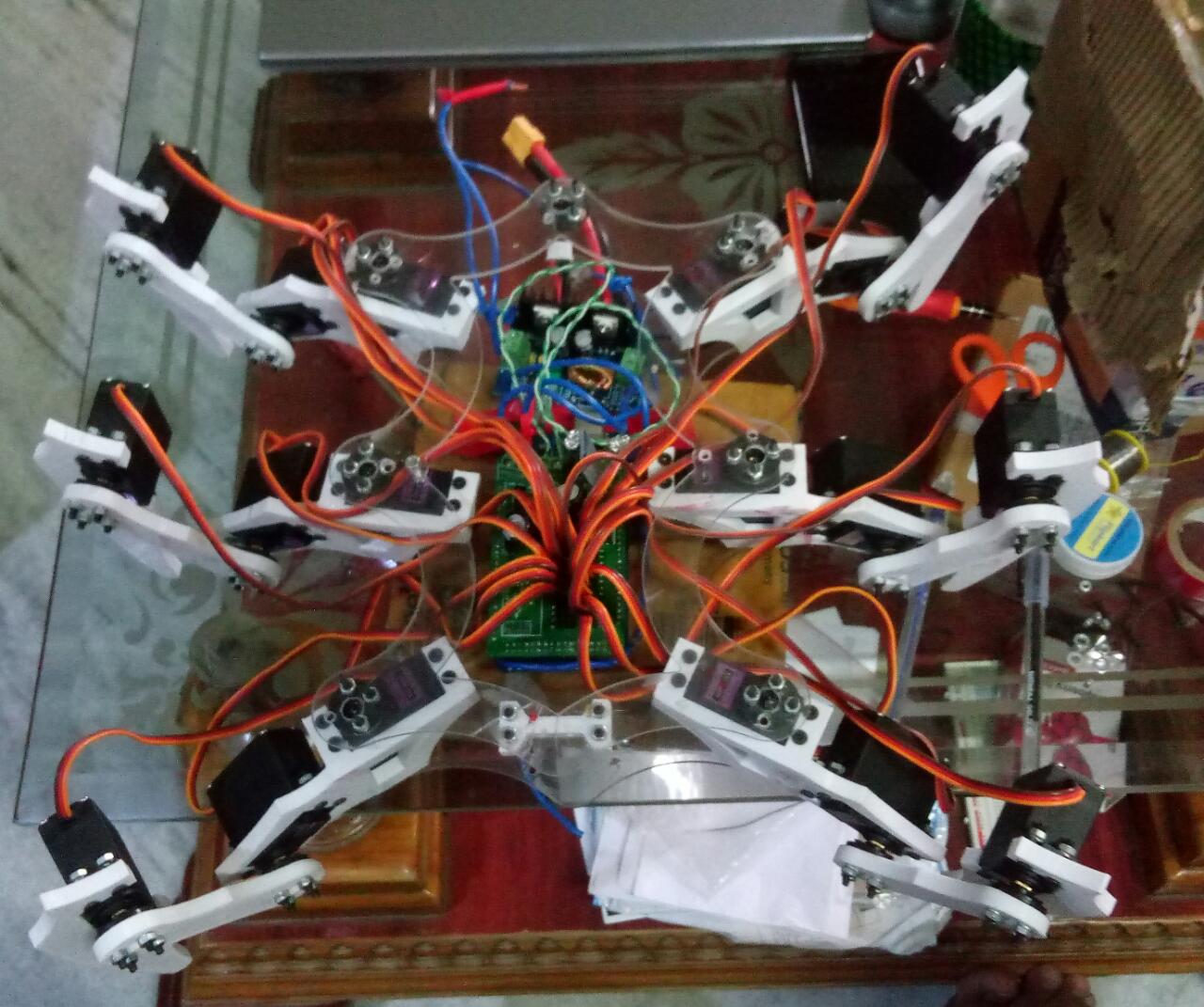 It has been fabricated using 3D printed Parts.It consists of 12 Servo Motors.