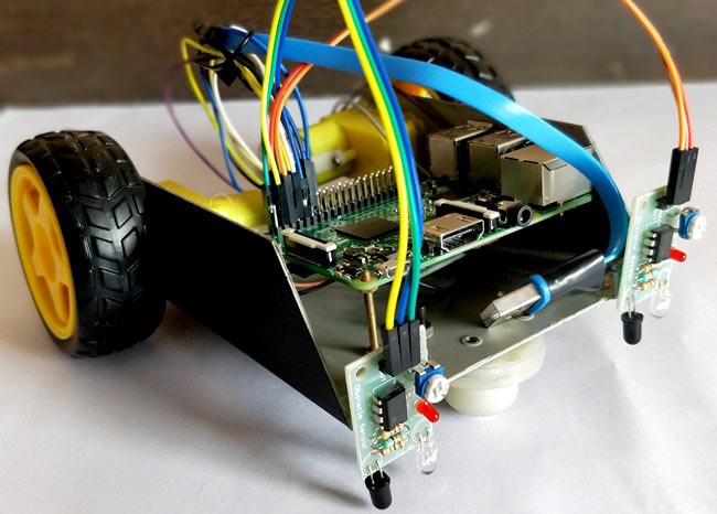 Built a robot car with an On-board pan-tilt camera, which sends live video feeds to the webpage and the bot can be controlled using the web interface.
